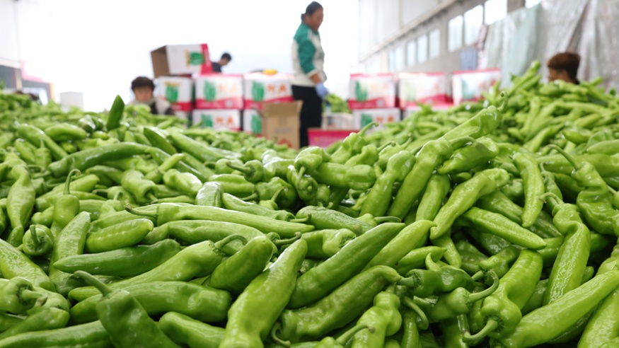 河南内黄:蔬菜市场辣椒交易忙