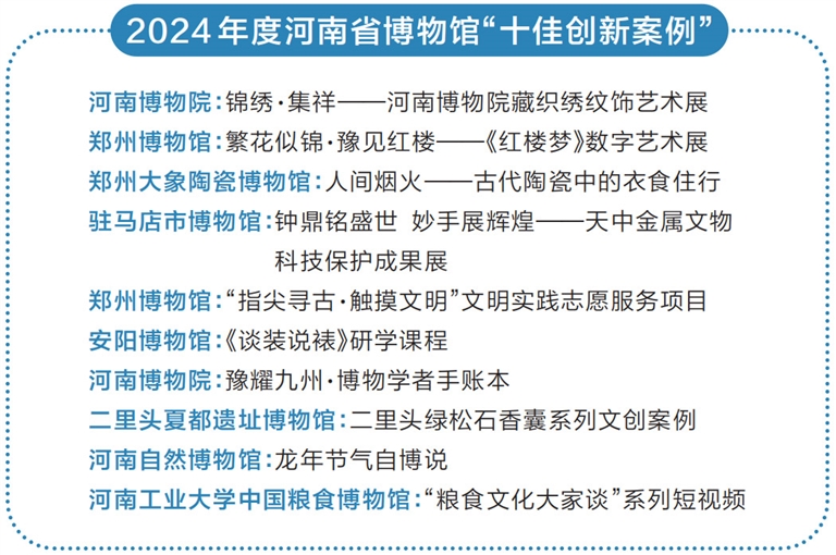 博物馆被称为一座城市的文化客厅。近年来,博物馆热方兴未艾,我省博物馆事业蓬勃发展,全省各类博物馆数量达402家,越来越多博物馆持续创新,不断为公众带来多元、特色的文化体验。2024年度河南省博物馆“十佳创新案例”评选活动,旨在进一步分享和推广全省博物馆在各领域的先进经验,引领全省博物馆协同发展。活动吸引了全省26家单位57个项目申报,经专家评选,最终产生了“十佳创新案例”及入围项目。