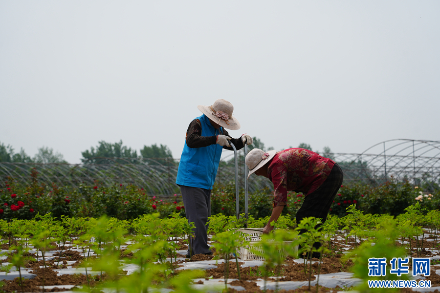 近年来,河南省南阳市宛城区瓦店镇来庄村积极探索发展思路,紧跟南阳月季产业发展步伐,大力发展以古桩月季培育、种植为主的特色产业,目前古桩月季园面积已达800余亩,提供零工就业岗位100余个,带动周边群众持续增收。新华网发(王浩 周浩 摄)