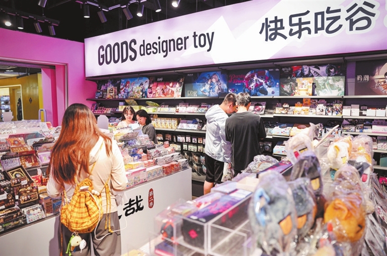 与往年日漫主导的二次元消费不同,今年上半年,哪吒系列周边带动《非人哉》《盗墓笔记》《有兽焉》等一众国产IP成为大热门。探十里购物中心“三月兽”品牌销售人员王雅琪说,店内国产游戏IP衍生品销售持续走俏。其中,叠纸游戏公司旗下的《恋与深空》,热度居高不下;腾讯开发的《光与夜之恋》,相关衍生品持续增长;上海米哈游公司的《原神》《崩坏:星穹铁道》等作品,角色设计广受好评。