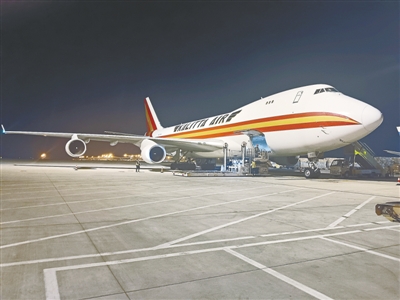 17日凌晨,一架满载跨境电商货物的飞机准备从新郑国际机场飞往美国洛杉矶