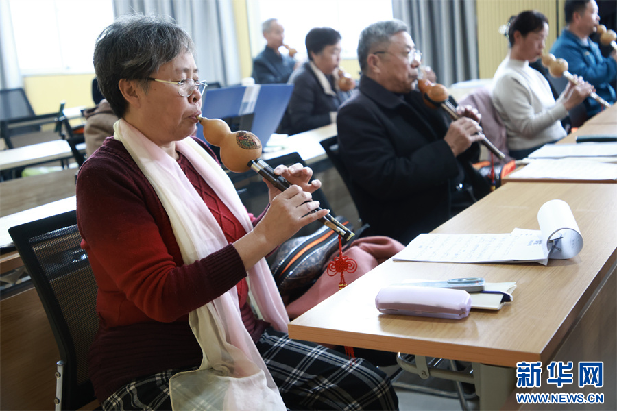 10月29日,在内黄县老干部教育活动中心,学员们在进行葫芦丝演奏。