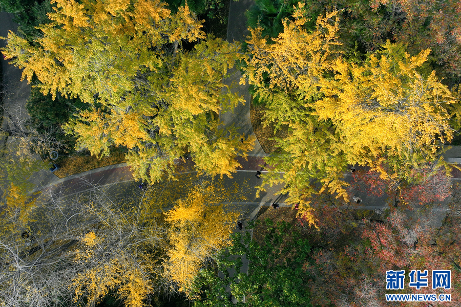 初冬时节,河南省南阳市人民公园、申伯公园内,一幅幅金黄色的画卷悄然铺展,吸引市民驻足银杏树下,欣赏美景,记录美好瞬间。(吴双 王浩)