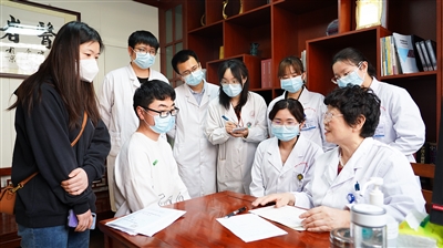 “你看上次通过调整用药量,这个小朋友的病情就有很大改善。”丁樱把病历本递给坐在对面的学生看,手指着检查数据,耐心地讲解着诊病技巧。