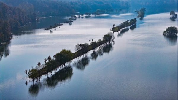 冬日的臻头河,褪去了喧嚣,更显恬静开阔。清晨,晨雾如轻纱般轻笼水面,整条河流宛若一条洁白玉带缠绕在连绵群山脚下,勾勒出柔美灵动的曲线。远山近水在雾中若隐若现,恍如闯入缥缈仙境。