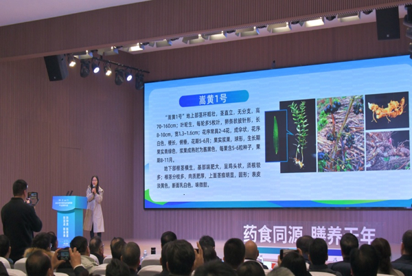 12月19日,2025年中原药谷药食同源产业创新大会发布黄精新品种“嵩黄1号”。(赵明辰 摄)