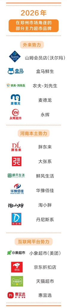一是外来零售势力。麦德龙郑州2号店开业时间敲定,拟于今年4月开业;山姆会员店郑州项目于去年1月完成拿地,预计2027年正式开业,其前置仓业务或将率先于今年落地;盒马鲜生郑州配送站网格正加快铺设、农夫·刘先生亦加码郑州市场,门店布局已扩充至10余家。