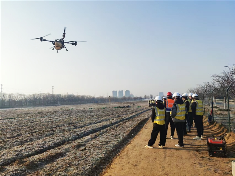 2025年农用无人机使用能力提升专题班上,青年农民学员正在开展农业无人机大田实操训练。受访者供图