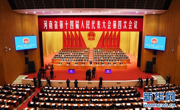 1月26日上午,河南省十四届人大四次会议在河南省人民会堂开幕。(新华社记者 张浩然 摄)