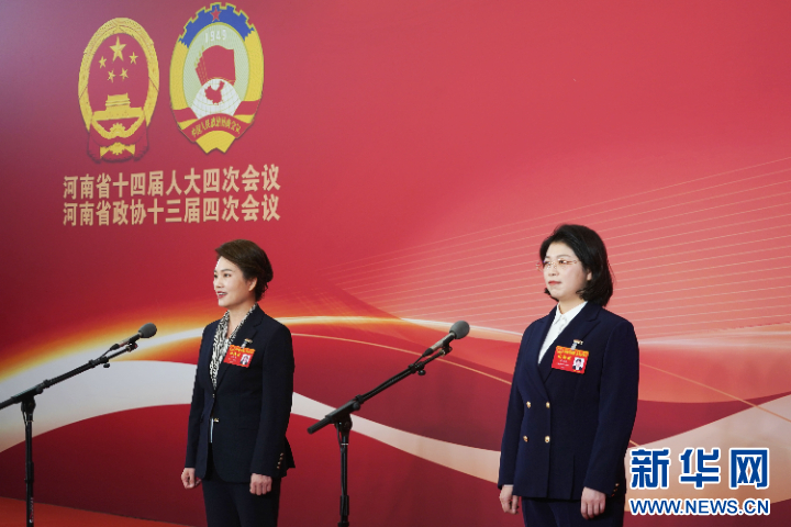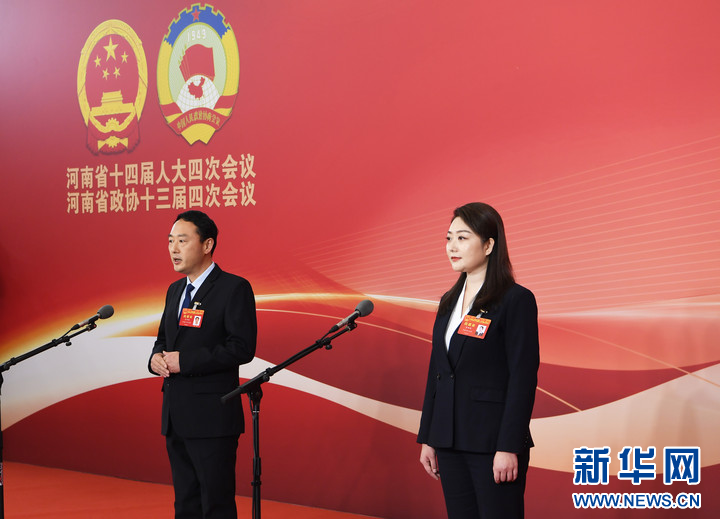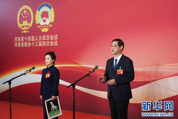 1月26日上午,河南省人民会堂,部分河南省人大代表在“代表通道”回答记者提问。(新华社记者 张浩然 摄)