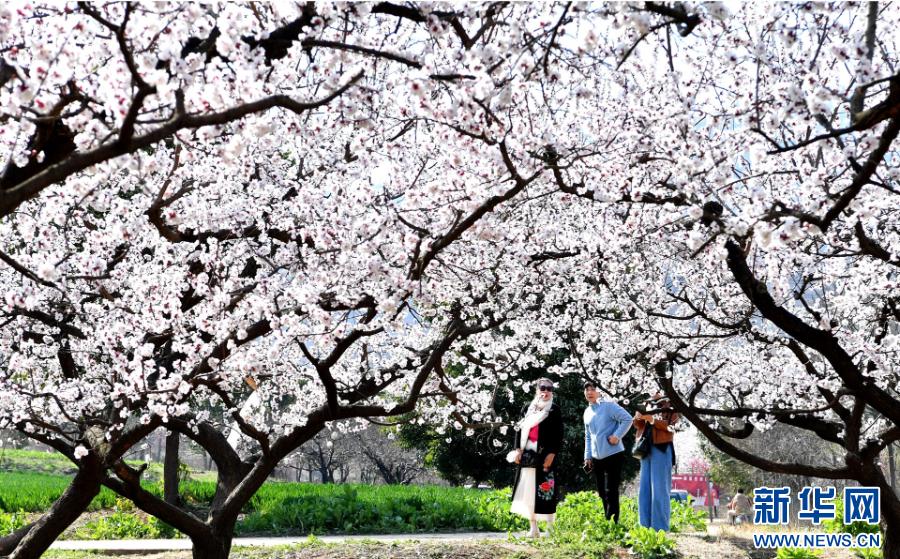 2025年3月17日,在河南省驻马店市驿城区胡庙乡,人们在赏花游玩。新华社发(弓华静 摄)