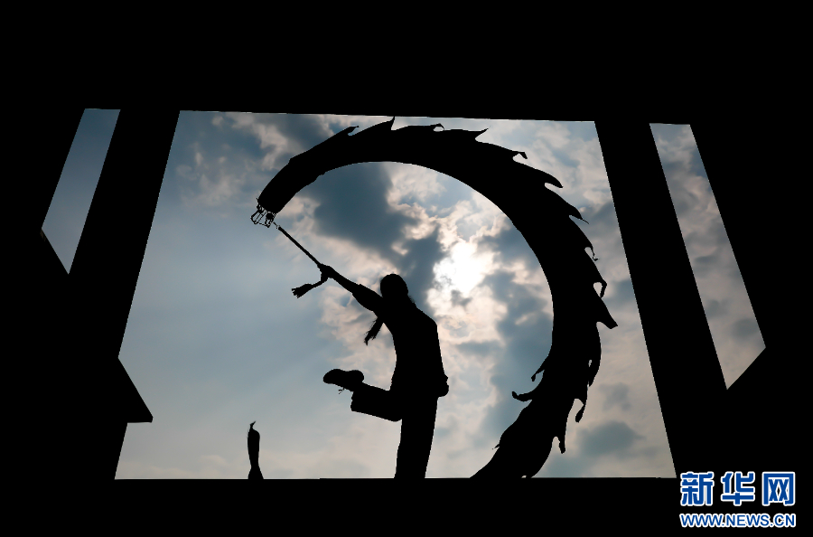 2025年8月8日,市民在河南省武陟县全民健身馆舞龙。当日是我国第17个“全民健身日”,各地开展丰富多彩的全民健身活动。新华社发(王琳锋 摄)