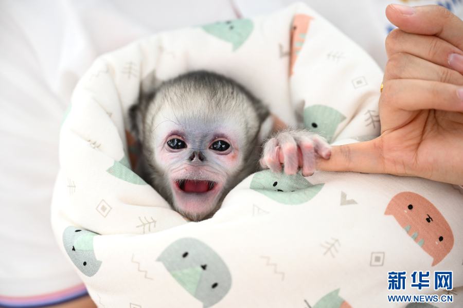 2025年4月8日,工作人员在河南省商丘动物园给川金丝猴幼崽喂奶(获评2025年新华社年度照片)。新华社发(李恒 摄)