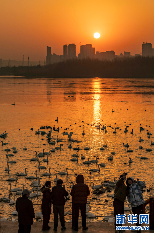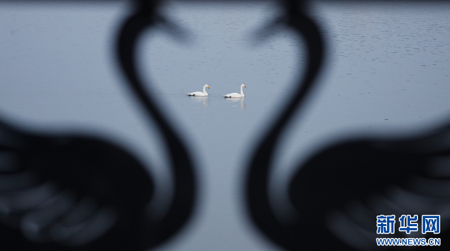 2025年12月20日在河南省三门峡市天鹅湖国家城市湿地公园拍摄的白天鹅。新华社发(冯小敏 摄)