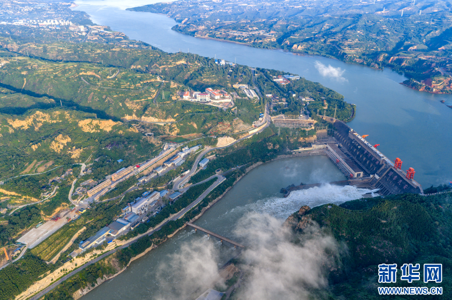 2025年7月4日拍摄的三门峡水利枢纽(无人机照片)。7月4日0时起,三门峡水利枢纽为配合2025年黄河调水调沙,加大下泄流量至2800立方米每秒,塑造大流量过程,冲刷河道淤积泥沙,助力小浪底水库排沙。新华社发(杜杰 摄)
