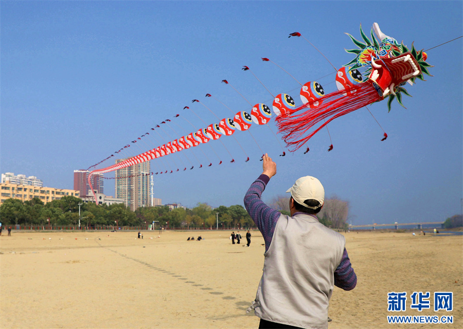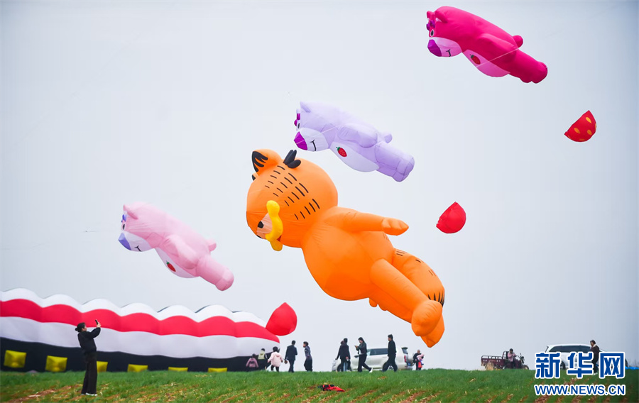 3月10日,在河南省南阳白河国家城市湿地公园,市民放风筝。新华社发(高嵩 摄)