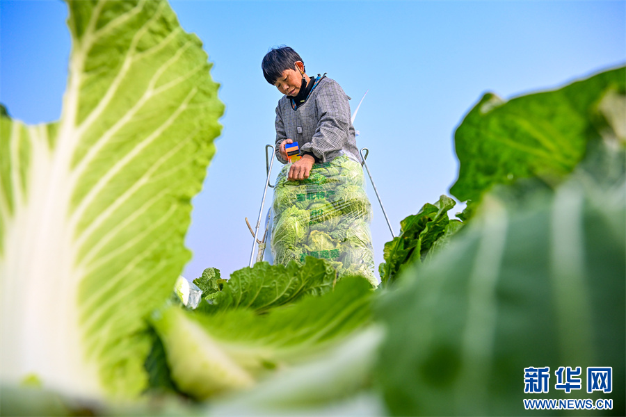1月5日,河南省商丘市夏邑县会亭镇西街东村农民在收获大白菜。新华社发(王高超 摄)