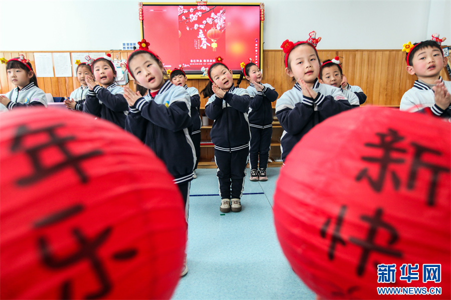 2月2日,在河南省焦作市博爱县县直幼儿园,小朋友开展文艺演出活动。新华社发(程全 摄)