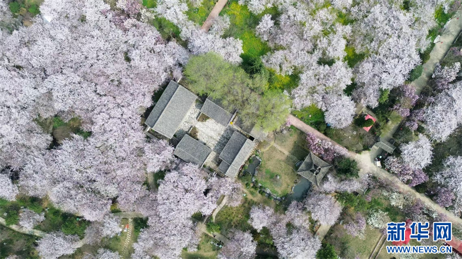 3月24日拍摄的河南省鄢陵县唐韵樱花园的樱花(无人机照片)。新华社发(牛书培 摄)