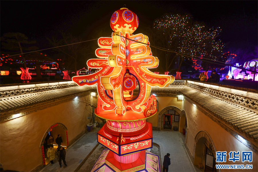 2月10日,人们在河南省三门峡市陕州区地坑院景区欣赏花灯。新华社发(孙猛 摄)