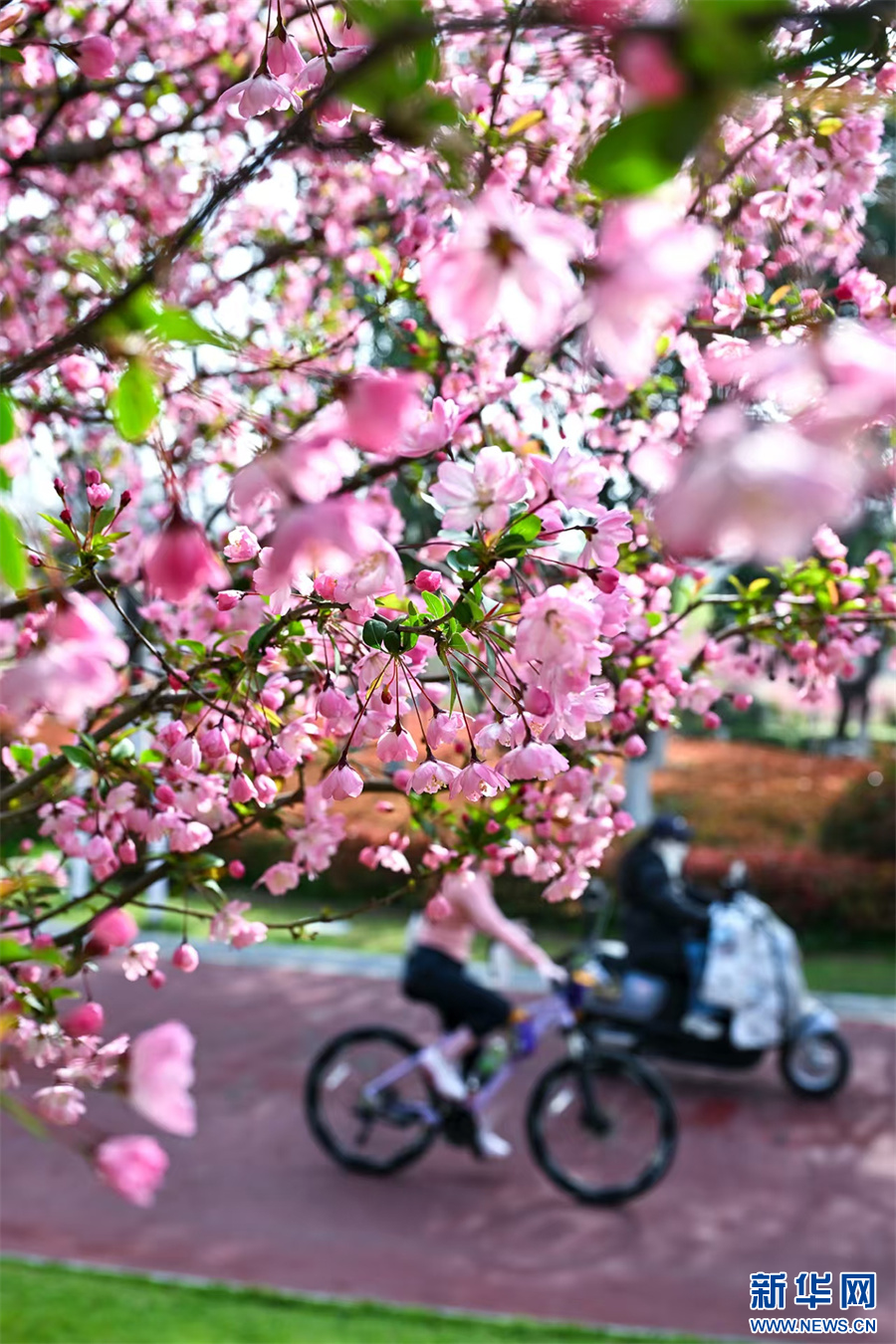 3月28日,人们在河南省商丘市日月湖景区绿道健身。新华社发(李恒 摄)