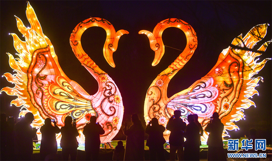 2月17日,游客在河南省洛阳市隋唐城遗址植物园欣赏“神都上元灯会”主题特色灯展。新华社发(黄政伟 摄)