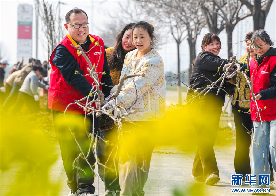 3月12日,河南省焦作市温县张羌街道机关干部在参加义务植树。新华社发(徐宏星 摄)