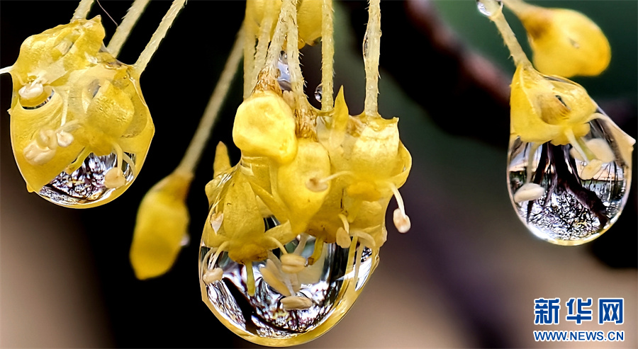 这是3月1日拍摄的河南省洛阳市街头花朵上的雨珠。新华社发(高山岳 摄)