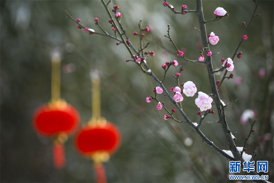 1月1日在河南省济源市承留镇花石村梅园拍摄的雪后梅花。新华社发(苗秋闹 摄)