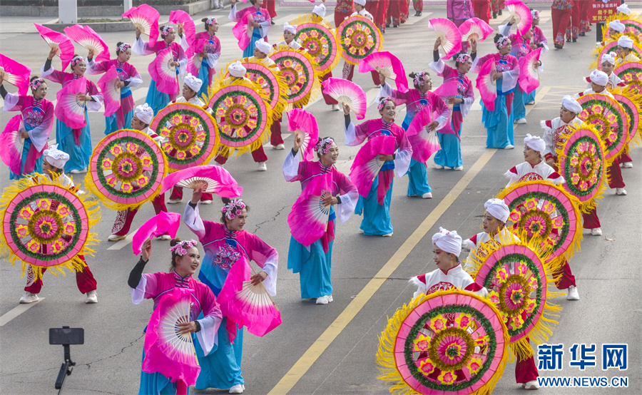 2月17日,河南省商丘市睢县举办“豫东踩街”民俗文化巡游活动。新华社发(徐泽源 摄)