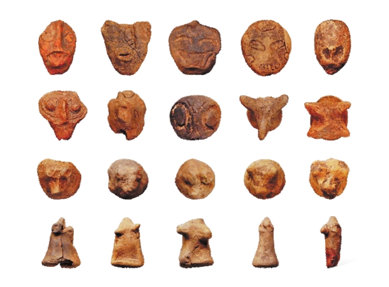 裴李岗遗址出土的人面兽面陶塑。郑州市文物考古研究院供图